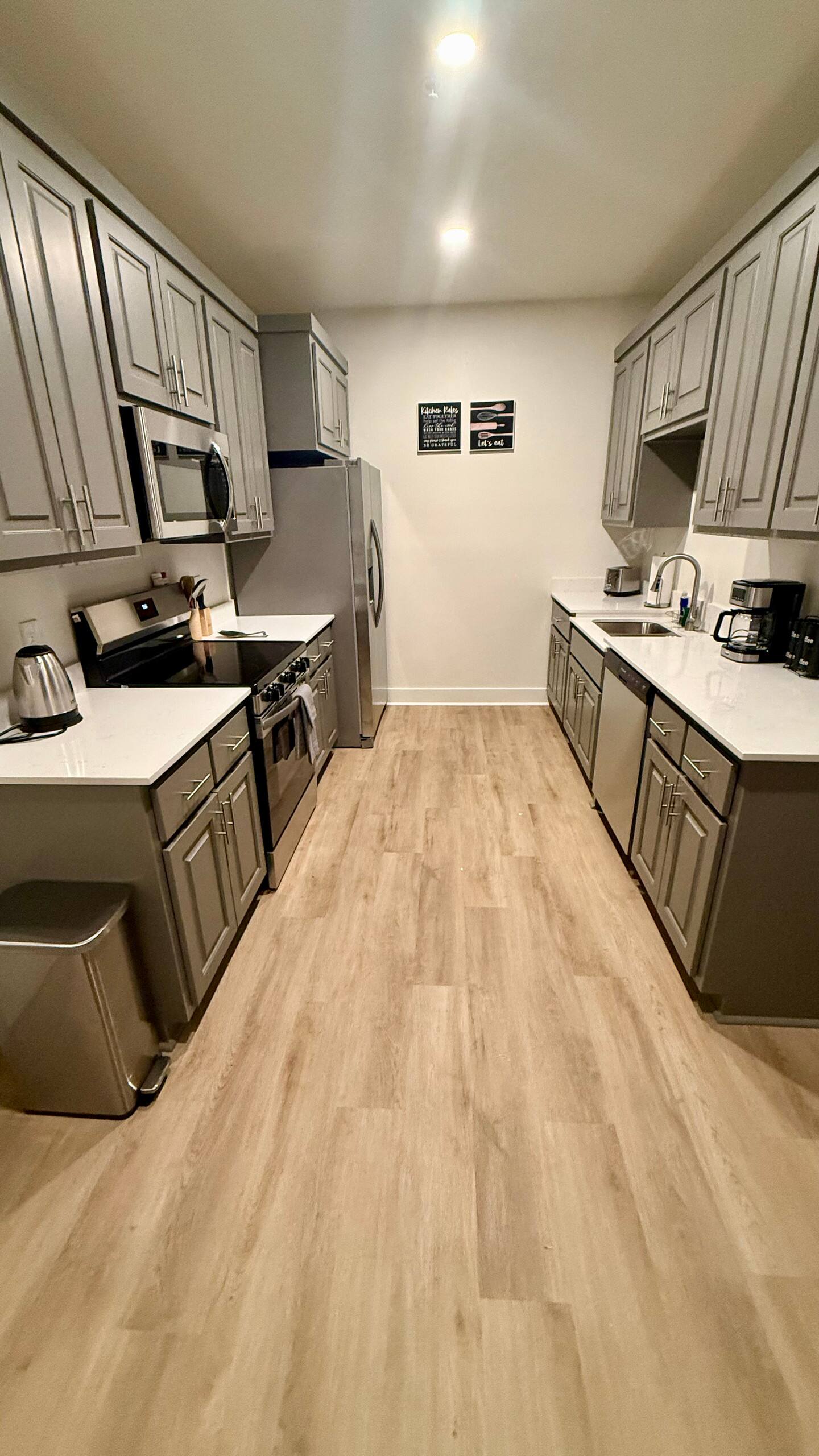 - Amenities: Air conditioner, Baking sheet, Bathroom, Bathtub, Bed linens, Bedroom and laundry, Blender, Body soap, Carbon monoxide alarm, Cleaning products, Clothing storage, Coffee, Coffee maker, Conditioner, Cooking basics, Dining table, Dishes and silverware, Dishwasher, Dryer – In unit, Entertainment, Exterior security cameras, Family, Fire extinguisher, First aid kit, Free parking on premises, Free street parking, Freezer, Frigidaire electric stove stove, Hair dryer, Hangers, Heating, Heating and cooling, Home safety, Hot water, Hot water kettle, Internet and office, Keypad, Kitchen, Kitchen and dining, Microwave, Outdoor, Oven, Pets allowed, Refrigerator, Room-darkening shades, Self check-in, Services, Shampoo, Shower gel, Smoke alarm, Toaster, TV, Washer, Wi-Fi, Window guards, Wine glasses